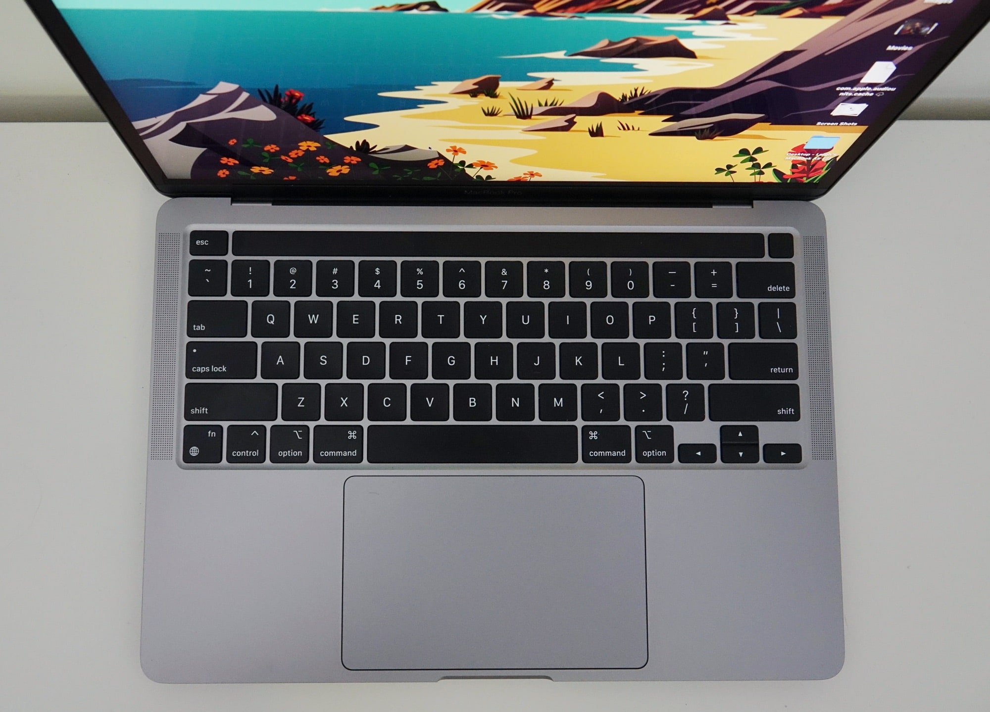It’s very much a case of “if it ain’t broke, don’t fix” with the late-2020 MacBook Pro, as Apple keeps the fairly slim edged metal body with a base that curves out underneath and helps the laptop seem as if it’s thinner than what it is, providing stereo speakers that flank the large keyboard, complete with a spacious trackpad.