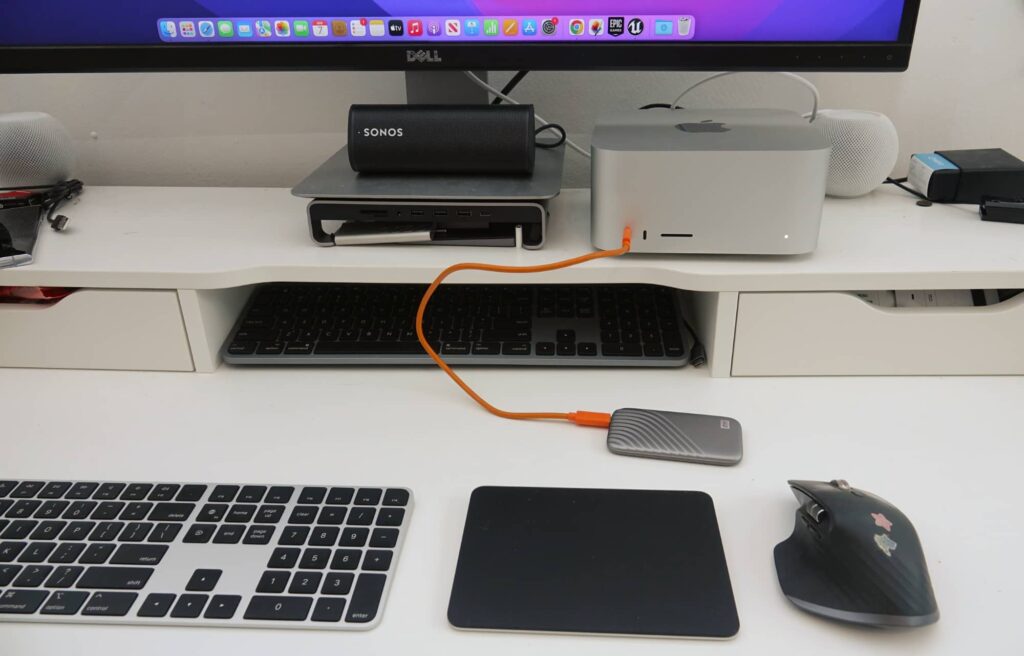 For the purposes of this review, we tried both, connecting it both to the Studio Display and to our 34 inch Dell ultra-wide, both of which worked a charm, allowing us to use the Mac as you would any other Mac.