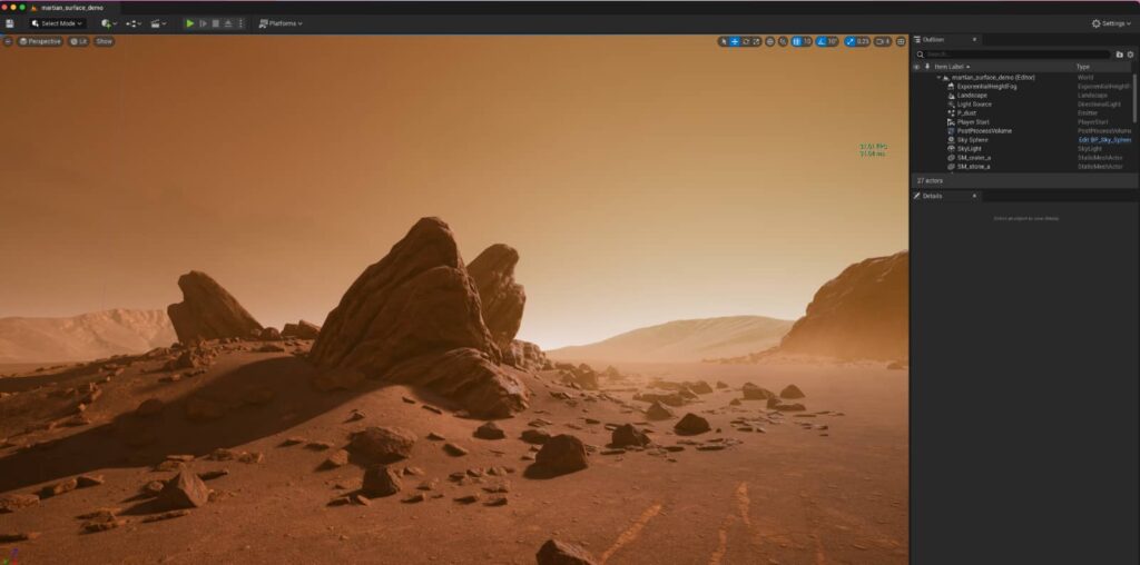 One of our favourite tests lately is to check the FPS reading on a project we've been working on in Unreal Engine, a particle-laden environment of Mars, as if you were sitting on the red planet waiting for a scene to roll out. On previous M1 models, we'd be lucky to get this thing about 8 frames per second in Unreal Engine 4, and the whole thing was practically unusable.