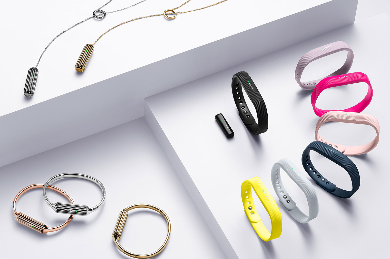 Alternatively, there’s metal bangle version of the Flex 2 pendant, so you can keep wearing it on a wrist, but do it in a way that makes it less about fitness and more about fashion of sorts.