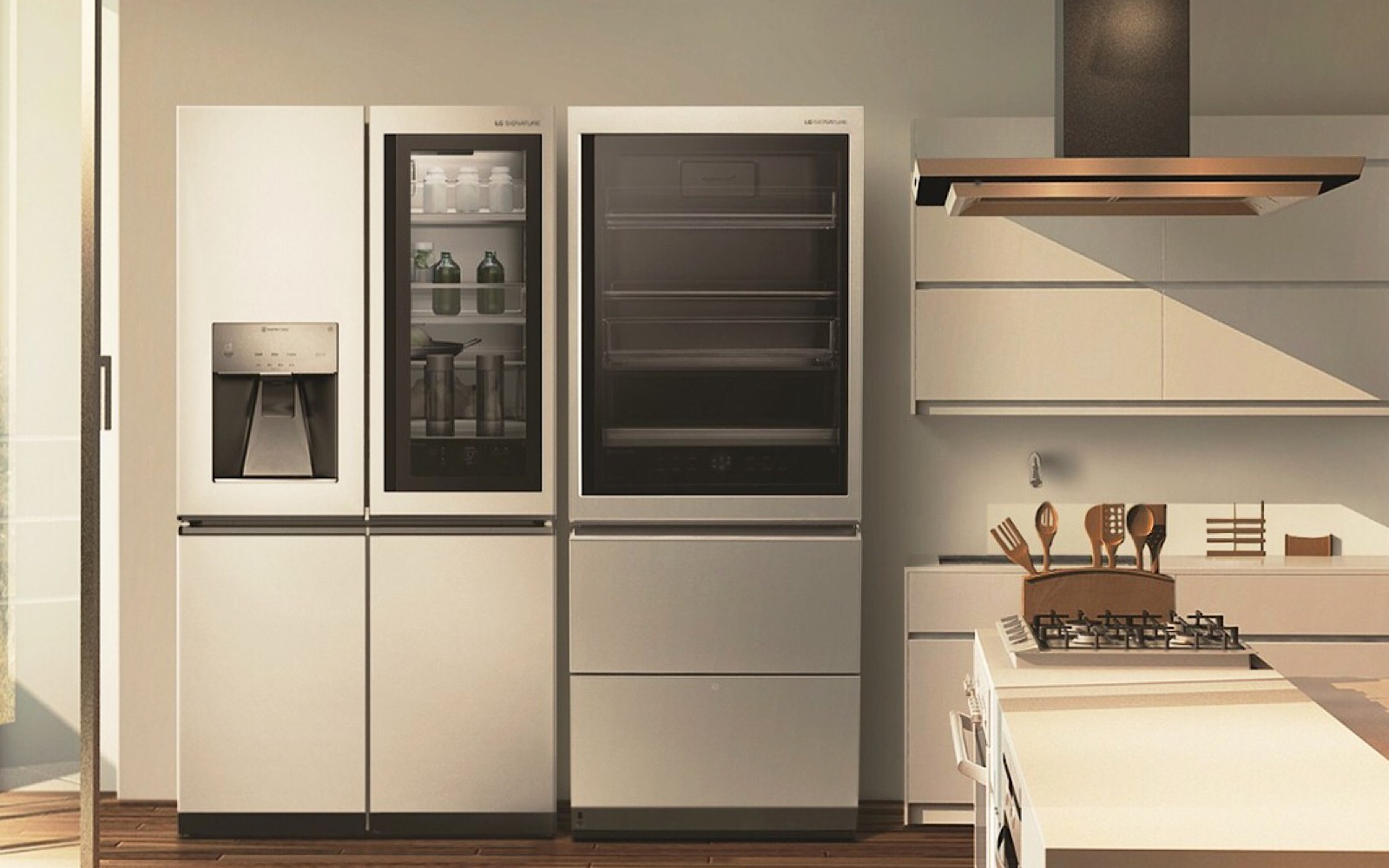 LG’s Signature Fridge is pretty much the flagship of fridges, with a door that opens for you, freezer drawers that slide towards you upon opening that section, smartphone control for temperature settings, and a door in a door that offers a glimpse of what’s in the fridge even before you open it.