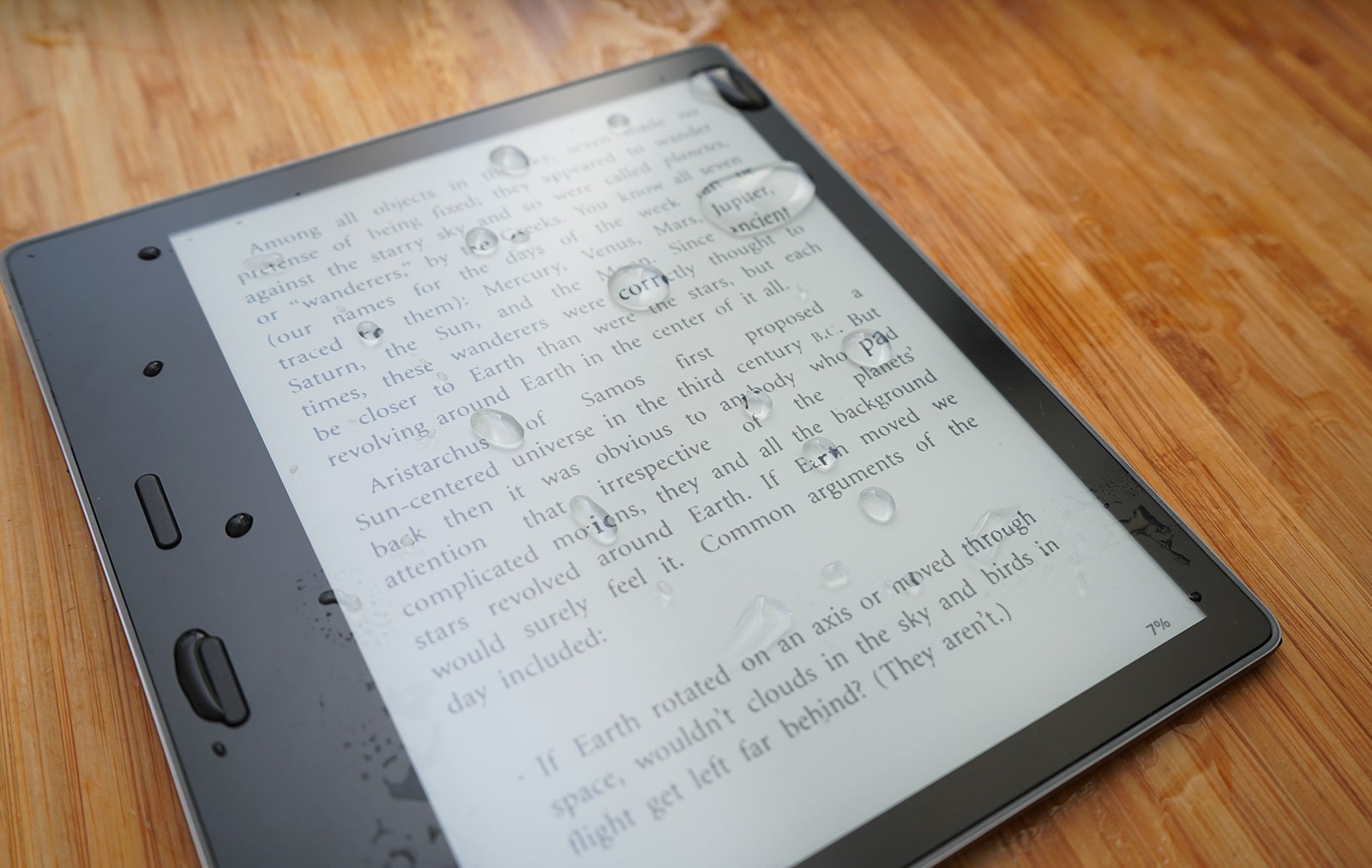 It’s also water resistant, meaning you can take it to the beach or the pool, and read without risk of major water damage to the eReader.