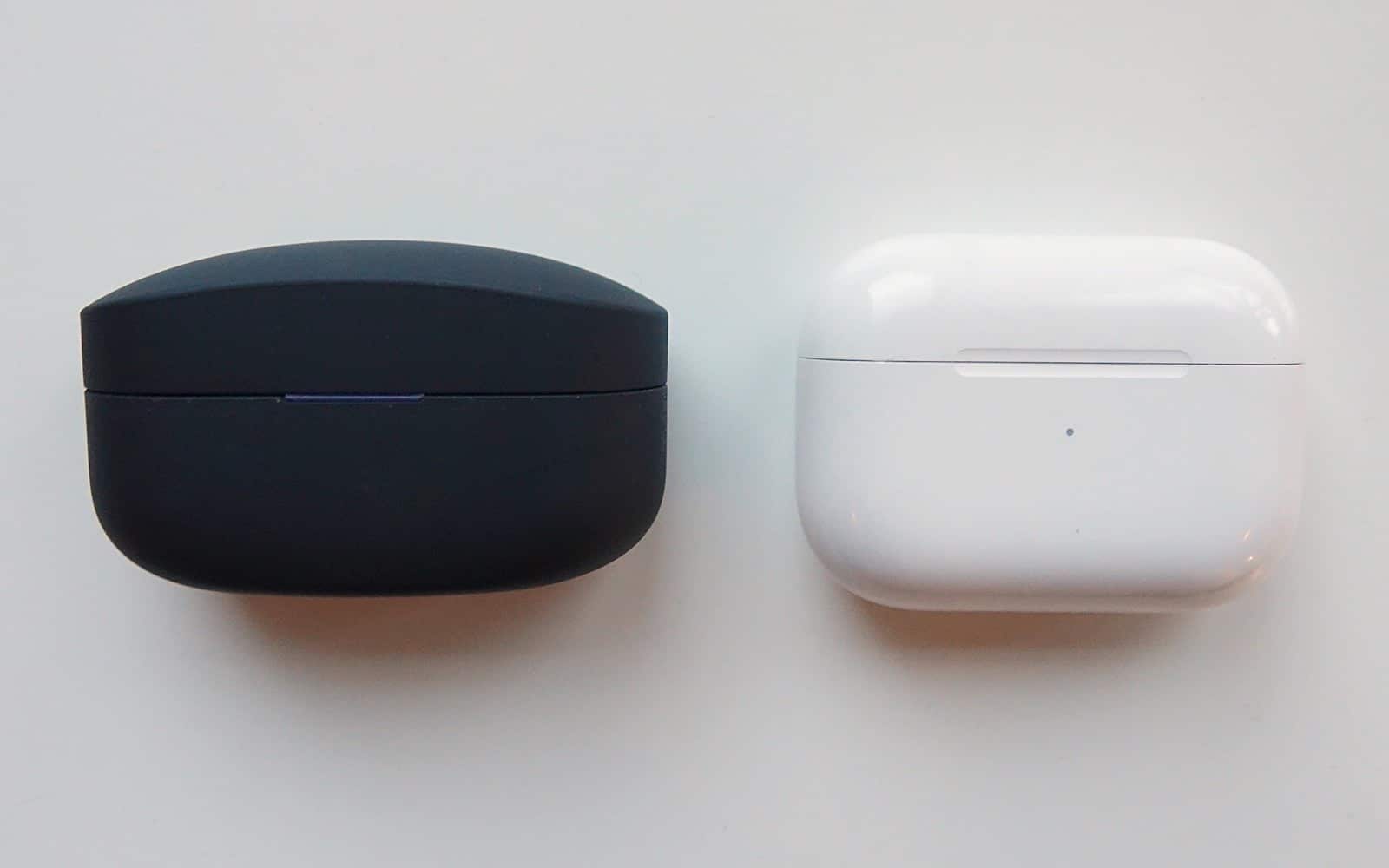 There’s around 24 hours whichever you choose, but it’s split up differently. Apple offers up to 24 hours of charges in the case, with closer to around 4 in the earphones before needing to be thrown back in the box. Sony offers 24, too, but you get eight hours in the earphones with the remaining 16 in the box.