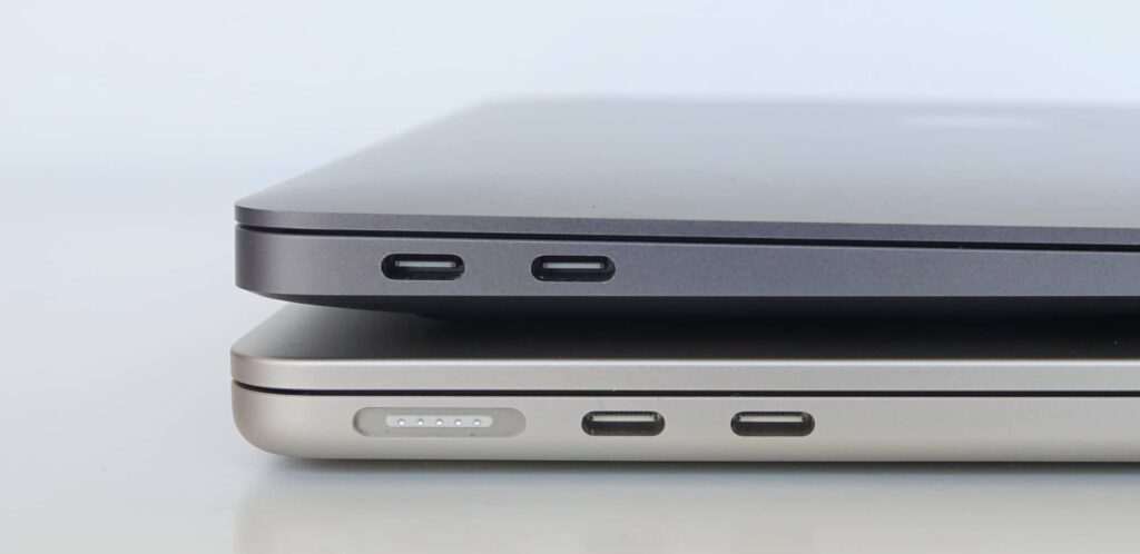 They both pretty much arrive with the same connection options, with the M2 Air getting an extra port for charging.
