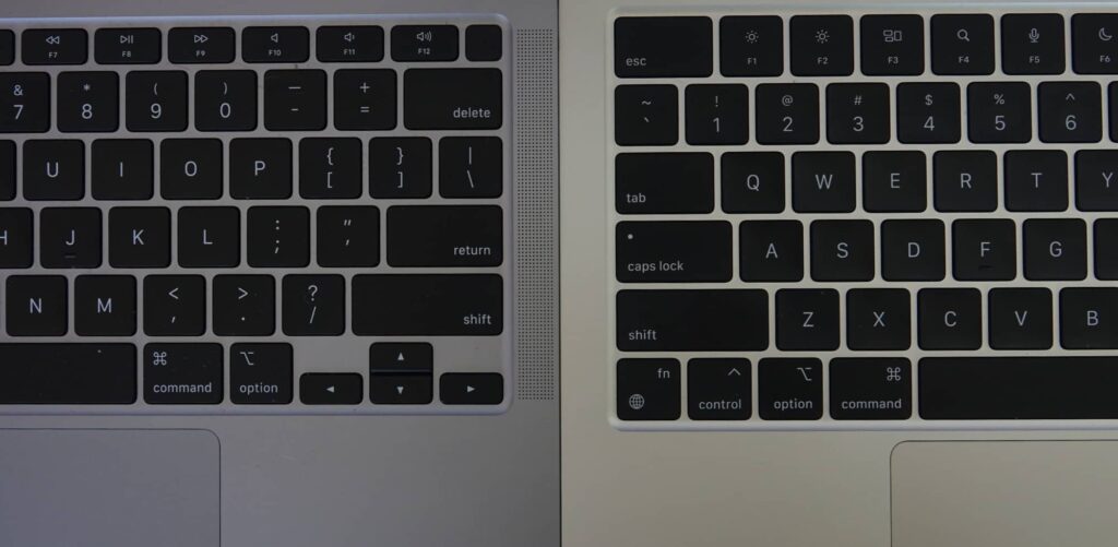 Comparing the keyboards of the M1 Air and M2 Air side-by-side, you can see the more recent model actually has an ever so slightly larger keyboard. The difference is small, but it’s definitely there.