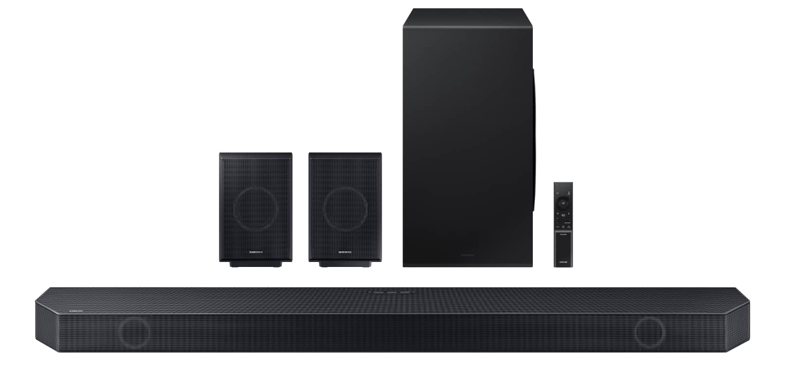 Samsung’s Q990C is a massive package mostly geared at Samsung TV owners, though it should work with any TV, for that matter, coming with a package for 11 channels of sound around, one subwoofer, and four spatial signals.