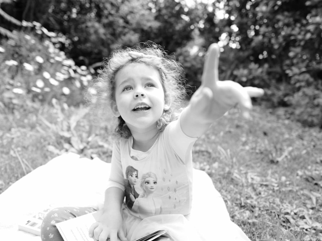 Next up we have our lovely daughter looking at a book in the garden, and both cameras are doing a fairly solid job.