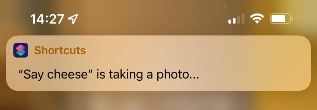 In this case, we can now say “Hey Siri, say cheese”, and the assistant will trigger our shortcut and take a selfie from the front facing camera, save it, and let us move on.