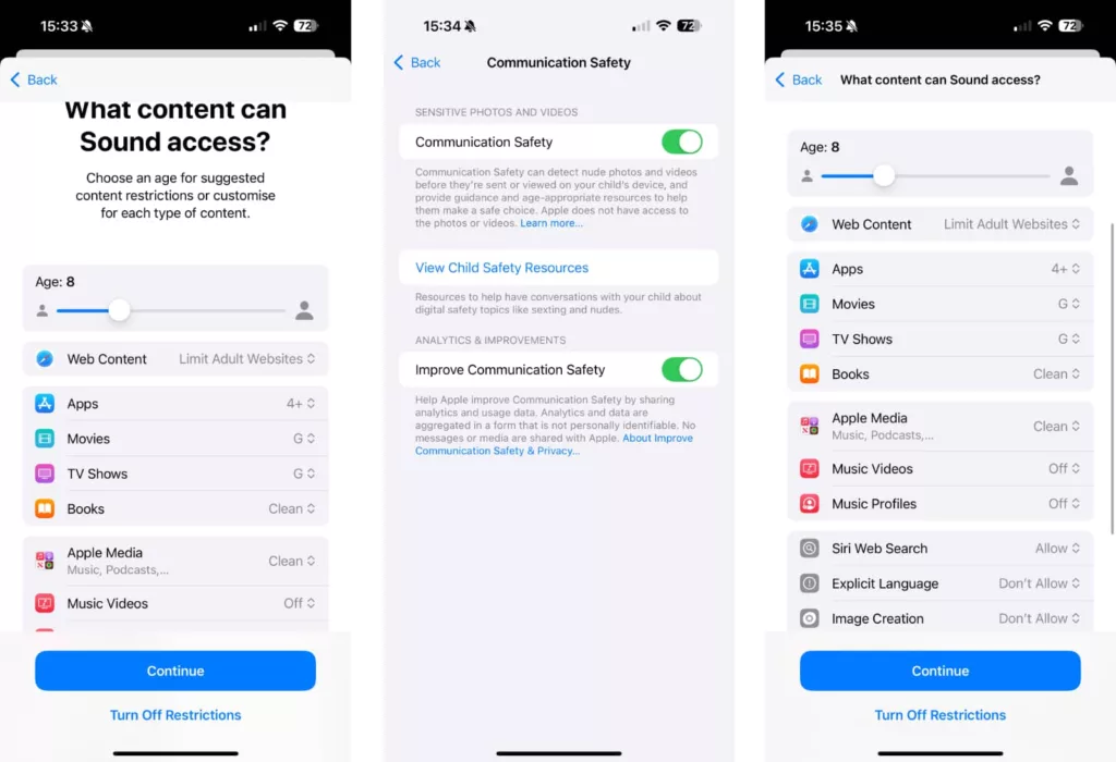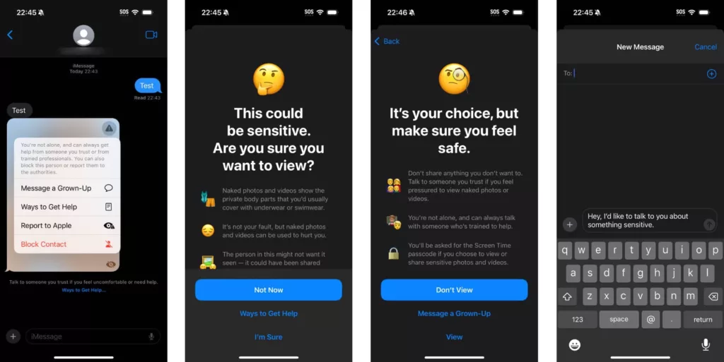 Included as part of its family controls, Apple’s “Communication Safety” essentially applies an approach that not only checks incoming images for nudity, but gives kids a series of obstacles, and a way to notify parents and guardians if they’re not sure.
