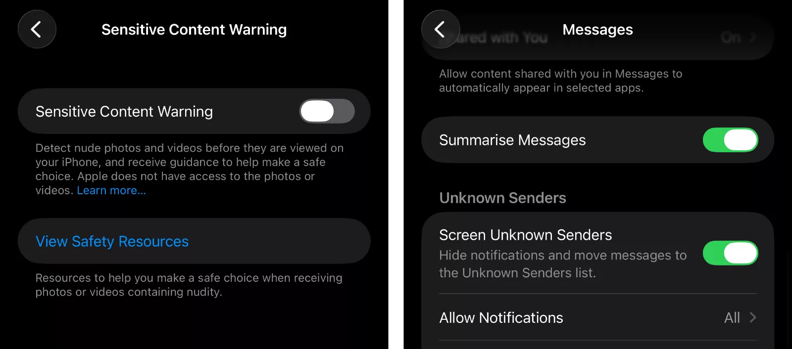 On iPhone, you’re looking for a setting inside your settings for “Messages” called “Sensitive Content Warning”, where you can easily switch on a system on your iPhone that detects nude images and videos sent over messaging apps, blurring them before you actually see them.