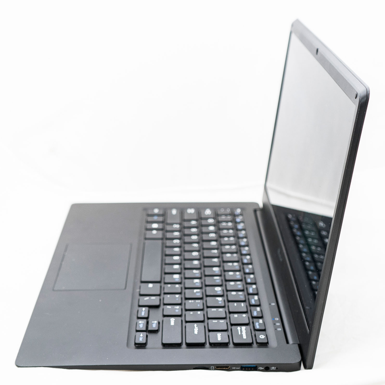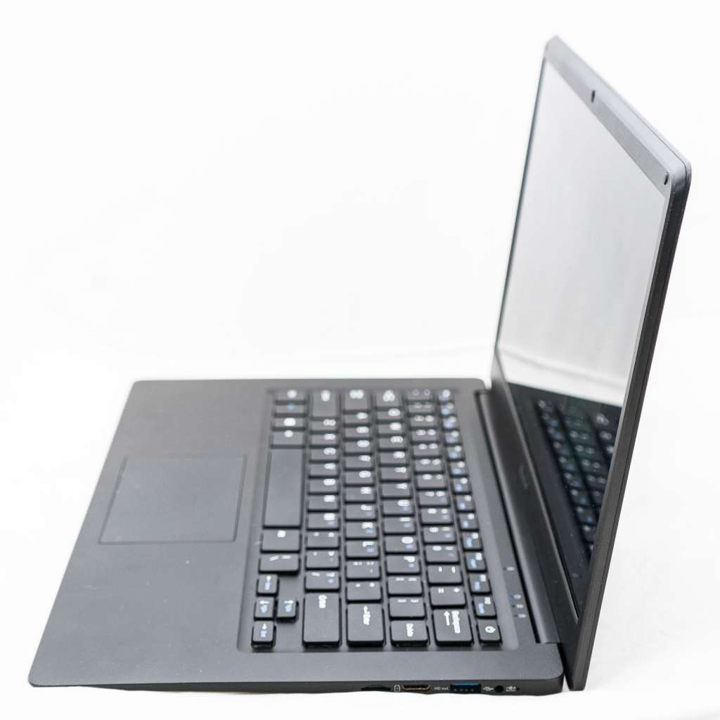 If you’re used to the silver metal surface of an Apple or Microsoft machine, or you like the style that modern hybrid machines go for, forget about it here, because the Unisurf 14 is simple, black, and made of plastic. It’s about as bland as laptop designs get, but that’s not why you’re here.