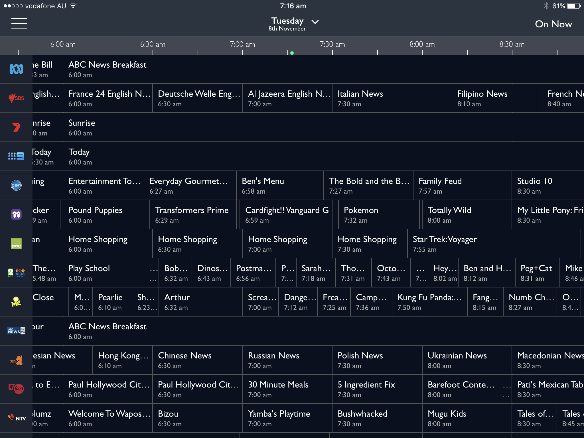 Freeview’s weekly TV schedule is a part of the app, revealing what you can watch across the spread of locally broadcasting television stations across the digital spectrum, and if you jump into each one, you’ll find you can bookmark programs by adding them to your favourites, or even alert you some time before they start to remind you to watch.