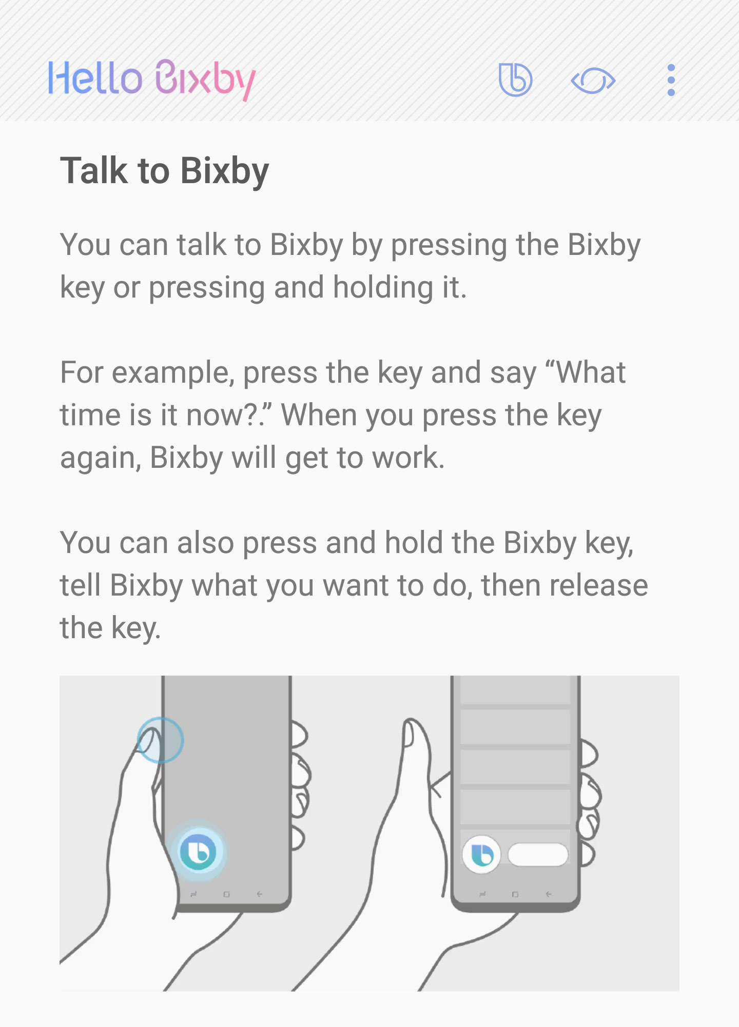 For a split second, Bixby flashes up with a small tutorial detailing how to talk to Bixby, suggesting the voice activation is there.