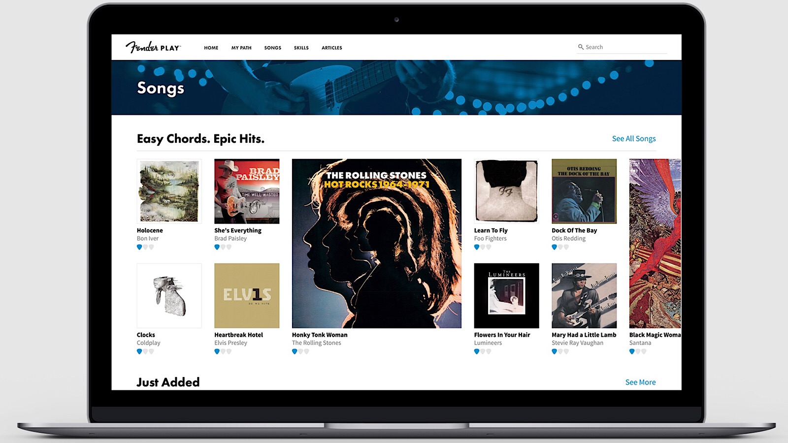 The music on offer is both old and new, ranging from The Rolling Stones to U2 to Foo Fighters to Shawn Mendes and many others, and the songs you pick to learn from essentially create your own path for learning, helping you to shape what and how you learn using genres like rock, pop, folk, blues, and country.
