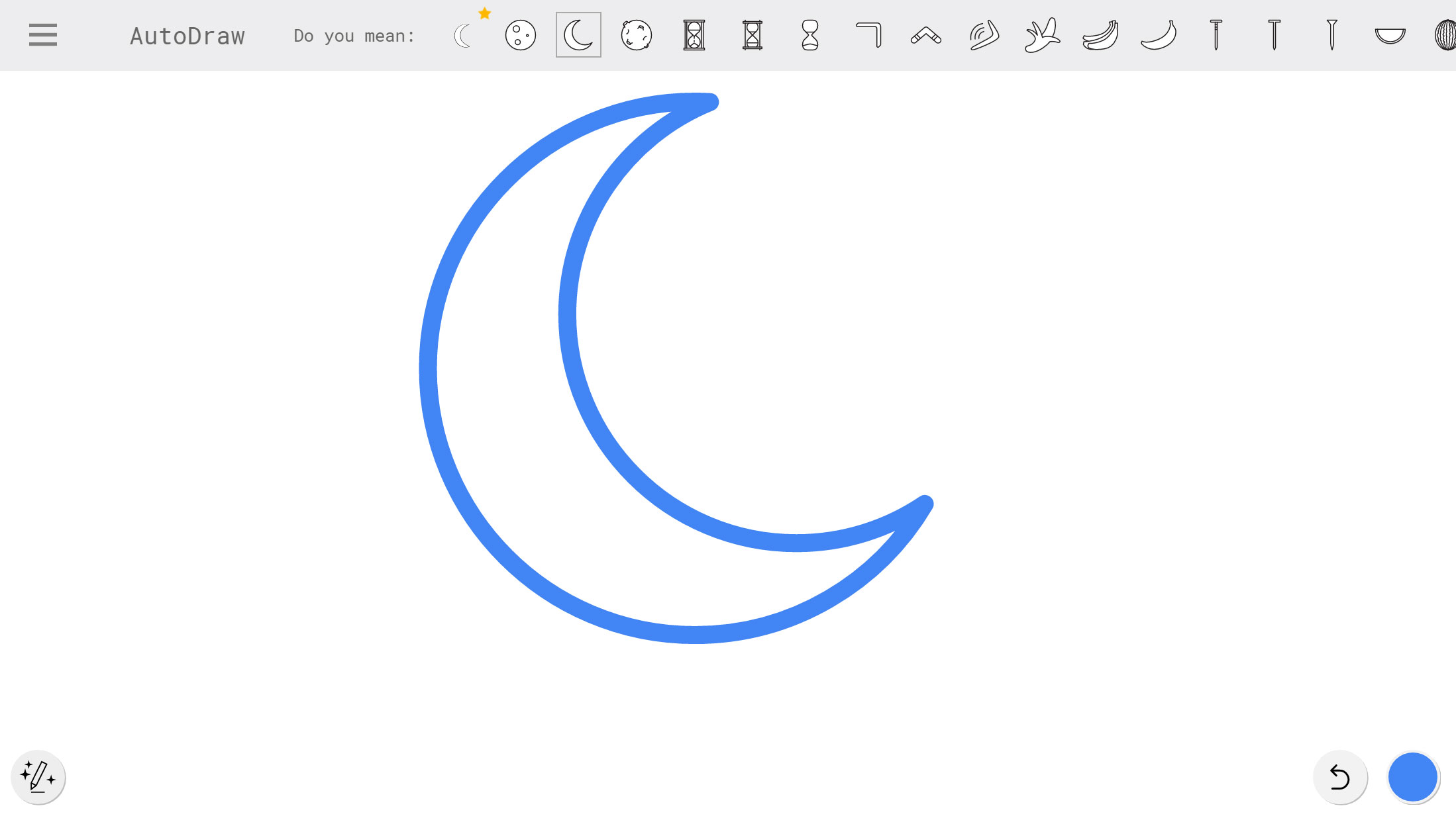 Once the image has been guessed, you can pick the drawing you want it to to finish, and it will pop it into the area, replacing your tiny line-based drawing with what it thinks you were trying to get at.