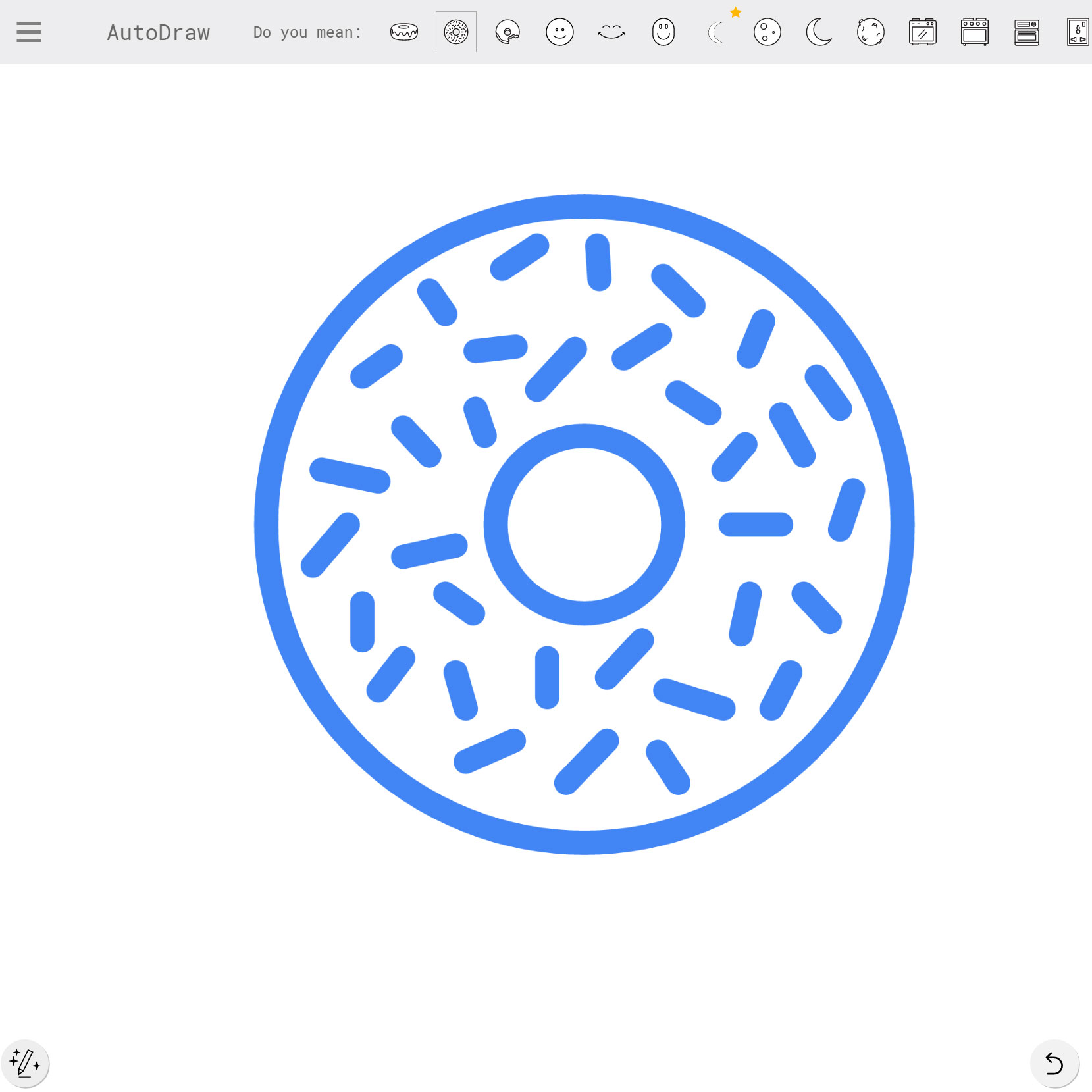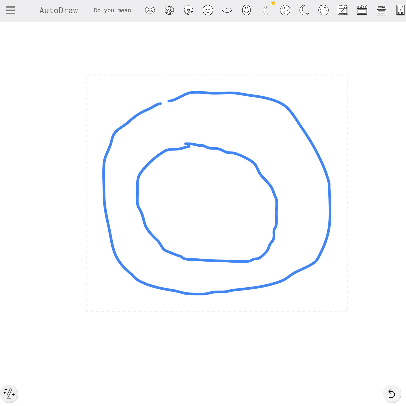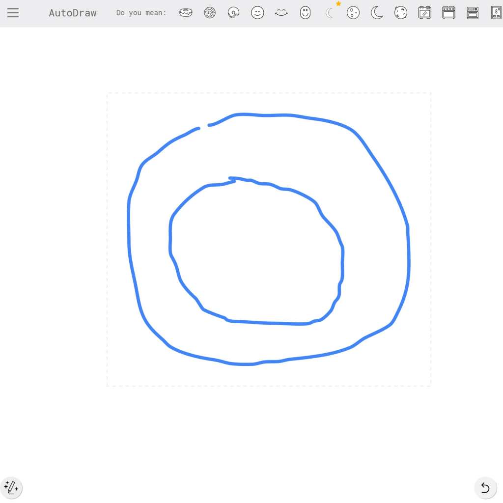 Drawing a donut in two steps: a circle, followed by a circle with a ring in it, and presto: donut suggested.