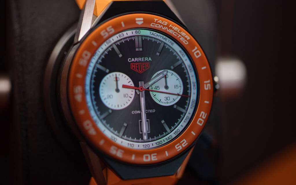 Taking on the top end, TAG’s Connected Modular 45 is an all-metal watch with WiFi, Bluetooth, GPS, and Near Field Communication (NFC), the latter of which can be used with Android Pay for contact-less payments.