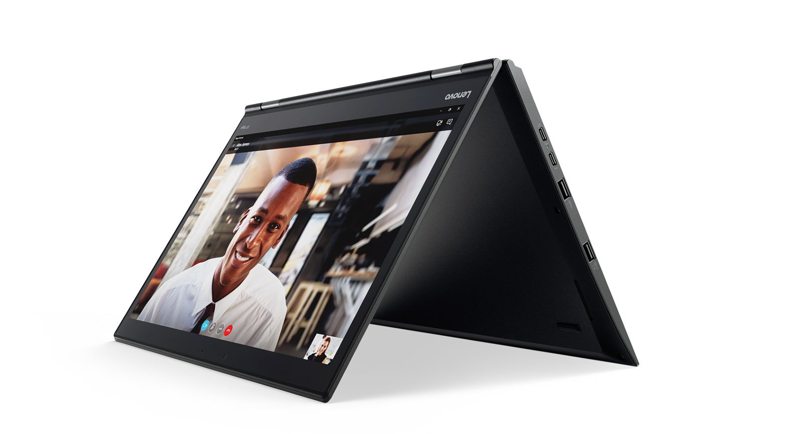 Like the other X1 models, Lenovo includes Thunderbolt, USB 3.0, WiFi 802.11ac, Bluetooth 4.2, and the option for 4G LTE, but you’ll also find a fingerprint reader here as well as an infrared camera supporting Windows’ biometric login “Windows Hello”, which allows you to log in to Windows simply by looking at the camera, no extra typing.