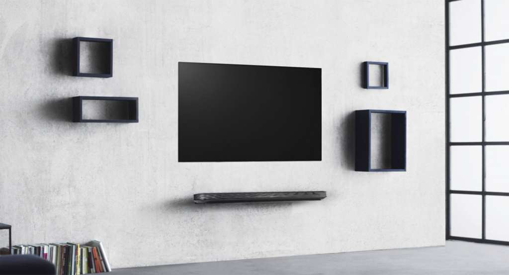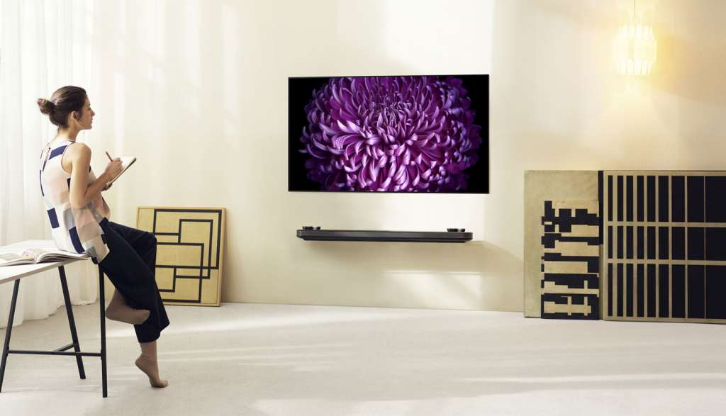 While it’s officially known as the W7, LG also calls this the “Wallpaper” TV, and there’s a very good reason why: it has to be wall mounted to be used, pressing against a magnetic wall mount and arriving with a special soundbar that includes all the connections for the TV, handled with a small ribbon cable that remains connected.