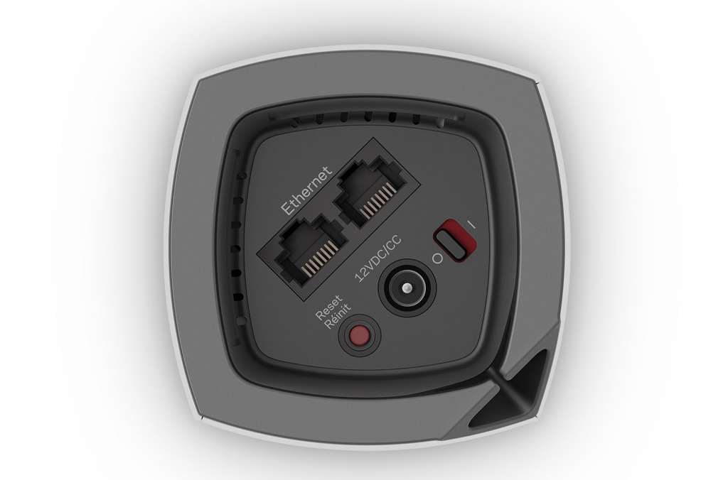 These nodes stand 18cm tall and more resemble speakers than routers, and yet each node includes a 716MHz quad-core processor, 4GB storage, 512MB RAM, Bluetooth, and a tri-band 802.11ac chip (AC2200) that provides one 2.4GHz and two 5GHz connections, with two Gigabit Ethernet ports at the bottom to connect things that may need to be hard wired, such as a modem or a video game console, with the idea being that you place Velop nodes around the home to create a stronger network.