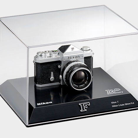 Strangely, the cooler gimmicks as part of the anniversary will be the things that actually aren’t cameras, with a Swarovski Nikon Model 1 replica that is almost to full scale, as well as a 1/2 scale Nikon F with a fake interchangeable 50mm lens and a back that can be removed with a dummy roll of film placed inside.