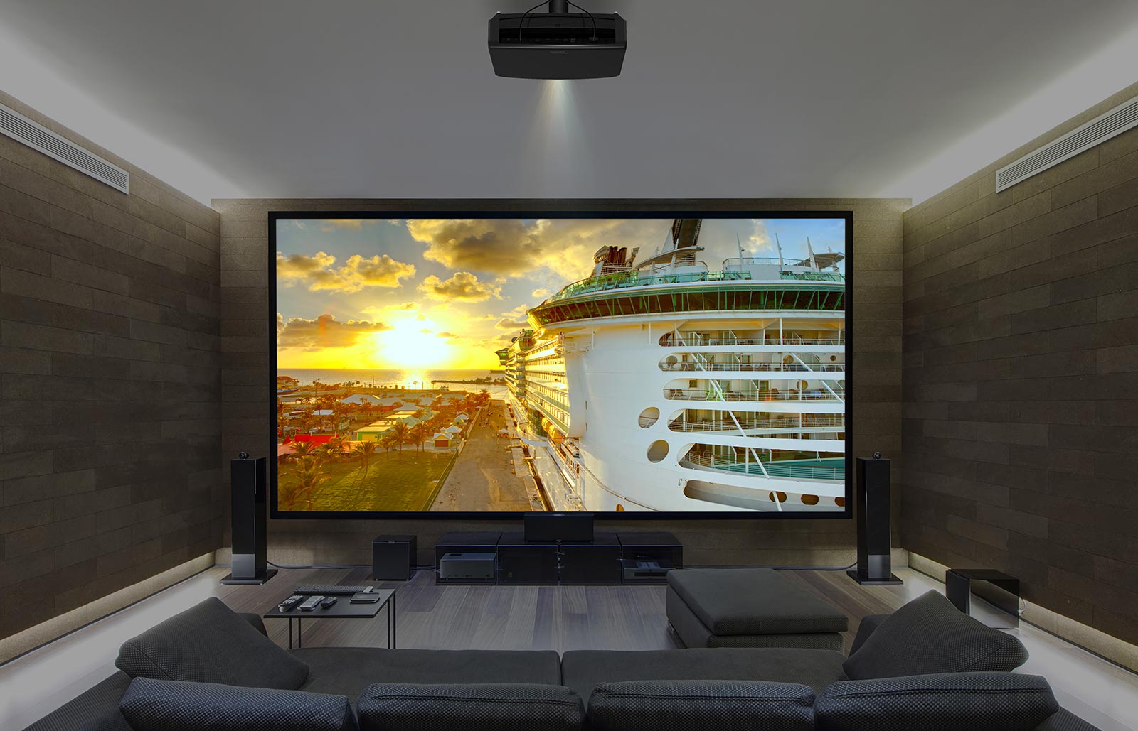Just make sure your room is set up and wide enough, because even though you only need a few metres to project that massive image, you don’t want to be craning your neck to set it all.