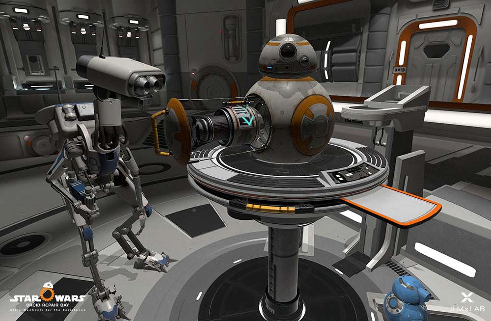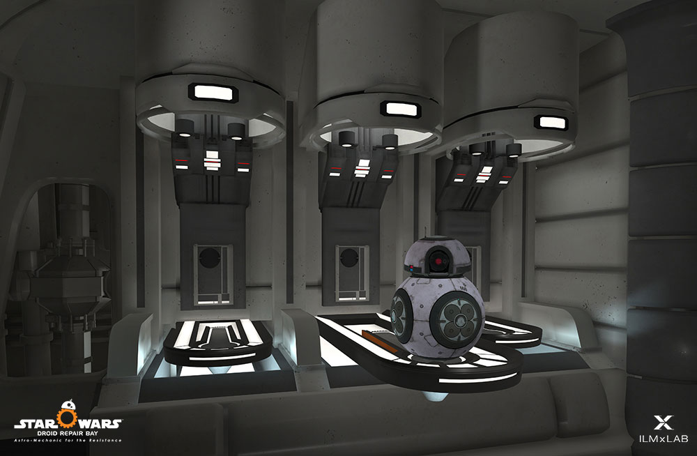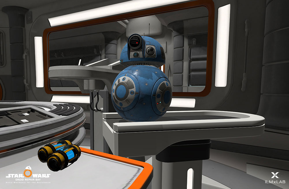 The experience is called “Droid Doc”, and it essentially turns you into a droid repairer for the BB class rolling droids like BB-8, working on repairing the spherical ball droids so they can keep fighting the Imperial First Order scum soldiers.