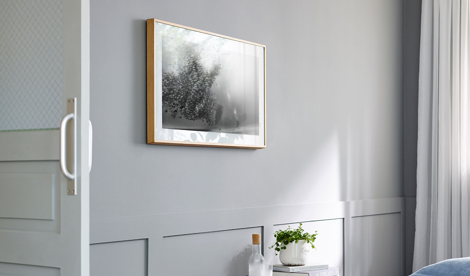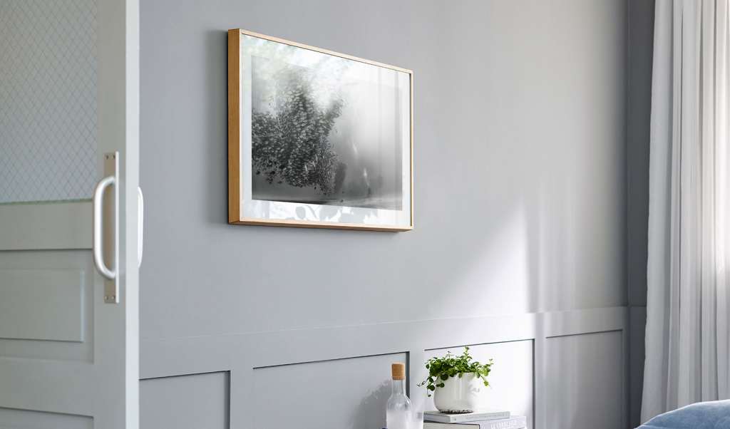 You see instead of just making The Frame into a television, Samsung has made it possible to encase the edges of The Frame in magnetic decorative panels, giving the TV a frame of white wood, or beige, or even walnut.