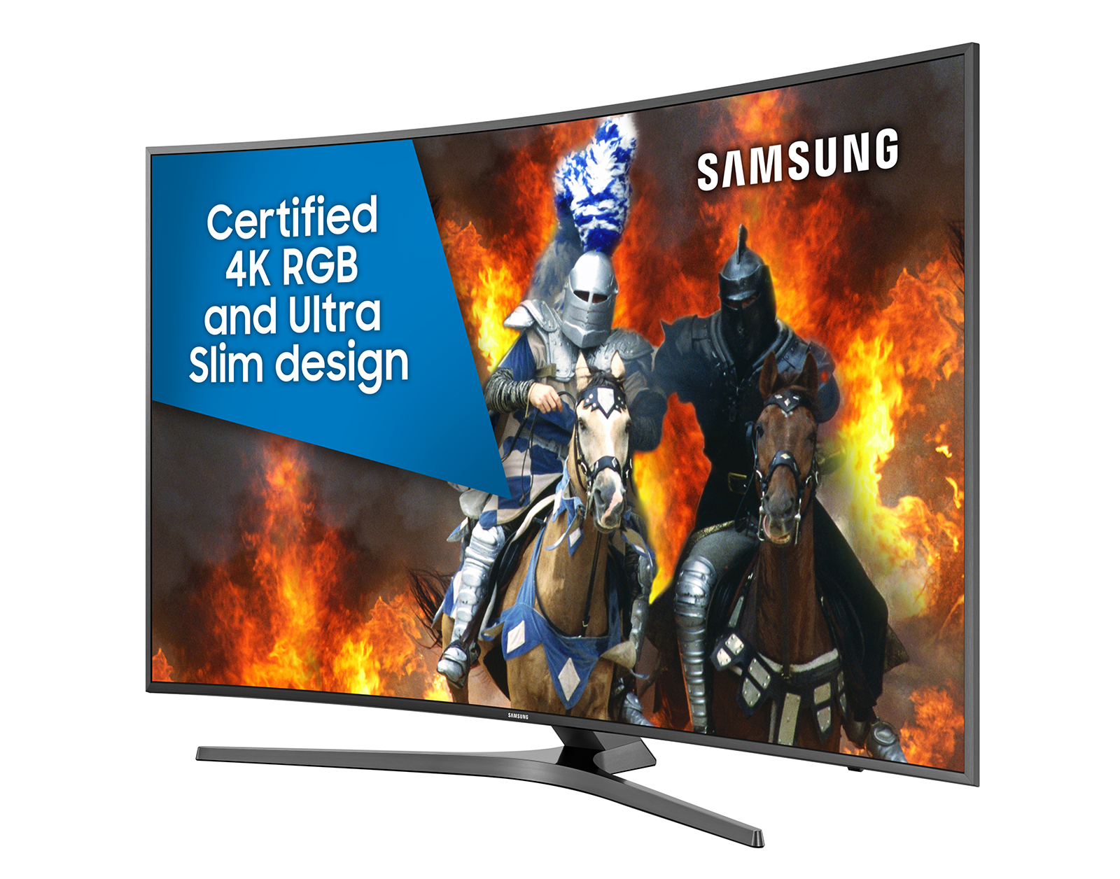 Samsung’s curved MU8000 on the left with the flat MU7000. Identical if it weren’t for that curve.