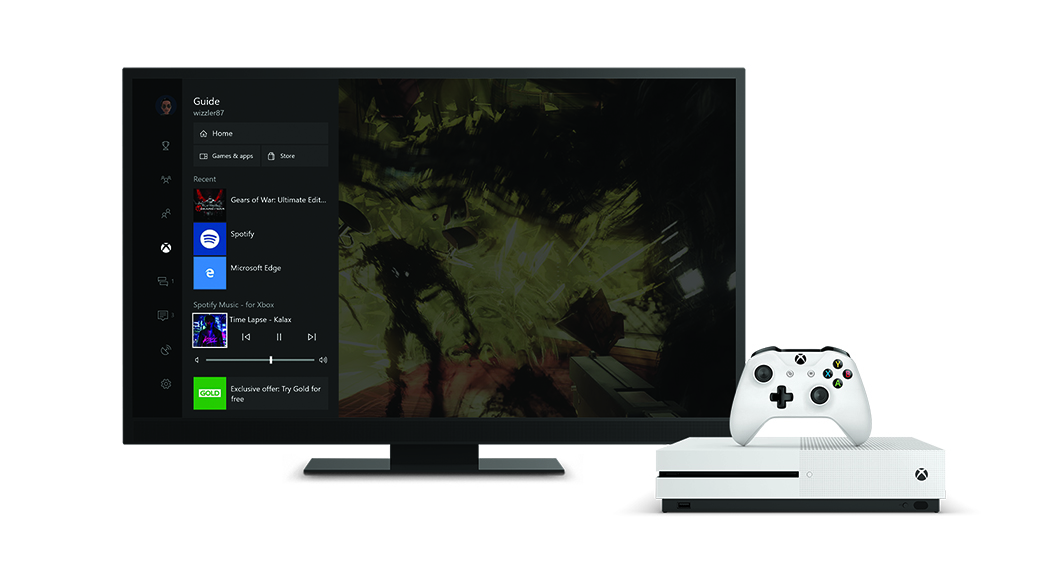 Part of the Xbox One’s “Gaming Hub”, music can be controlled by the Xbox One controller and used as a soundtrack for your games.