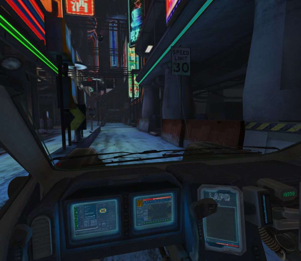 For the most part, Replicant Pursuit plays out like a bit of a roller coaster, getting you to sit in your seat and have the experience take you on a fly-thru tour of aspects of this city and world as you chase someone down.