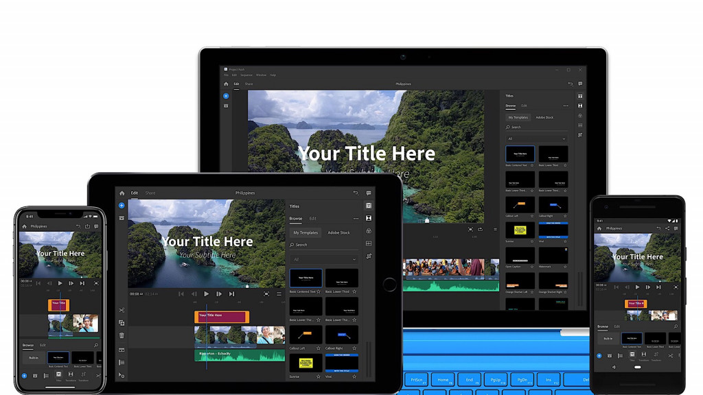 You can think of Premiere Rush CC as a sort of middle ground to Premiere Pro and After Effects, sitting in between to let you build videos with music and titles quickly, and either export remotely or come back and edit them using a proper Premiere workflow.