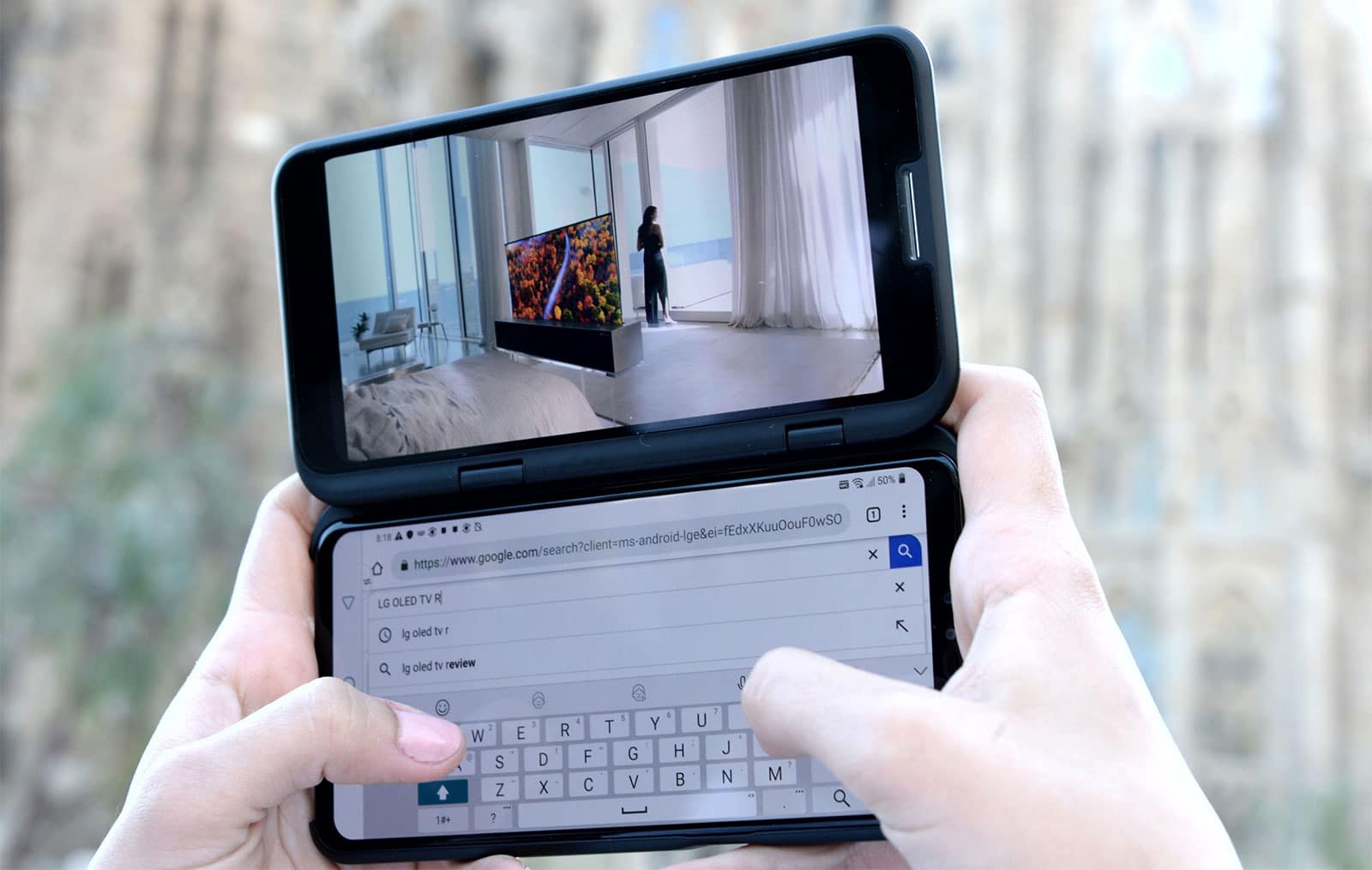 The Dual Screen isn’t the same screen as what you get on the LG V50, so you’re not getting another 6.4 inch hinged to the other. Instead, you get a 6.2 inch display that provides a secondary screen to be used horizontally a little like a Nintendo DS with the main phone as the controller, or so you can hold it like a book and jump across screens on both sides of the phone.