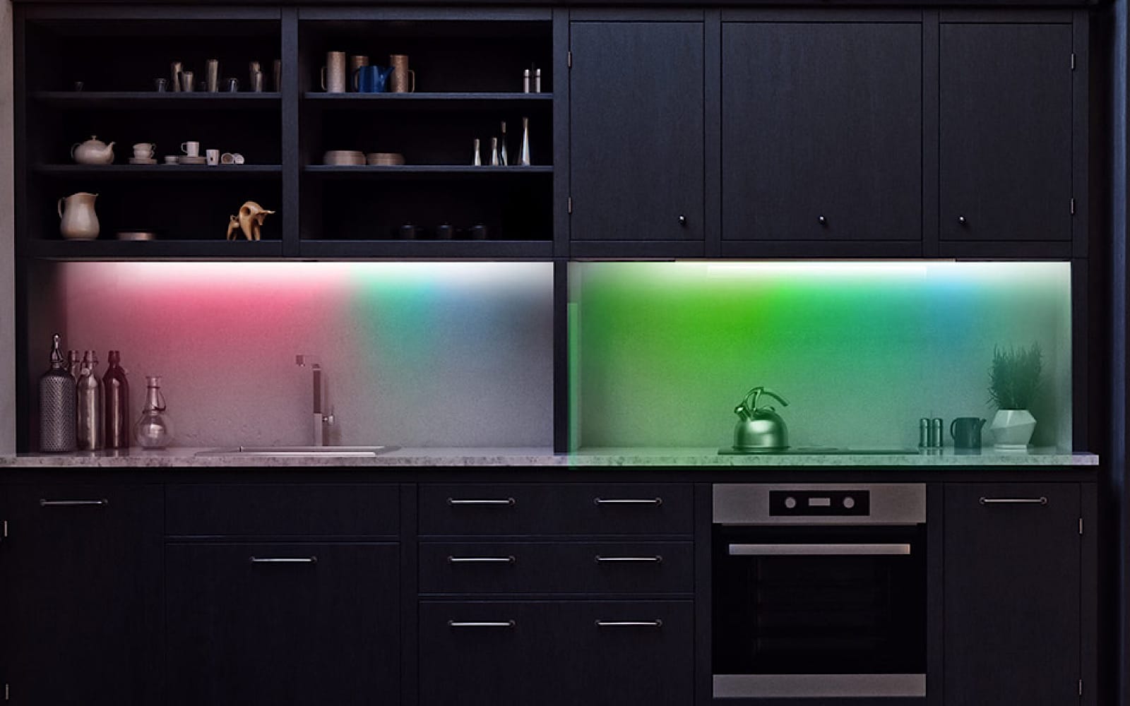 With a simple light change and app, you can give your home a different glow, applying blues and pinks and reds and greens. Any colour that can be made on the lightbulb by an LED can be used in the home.