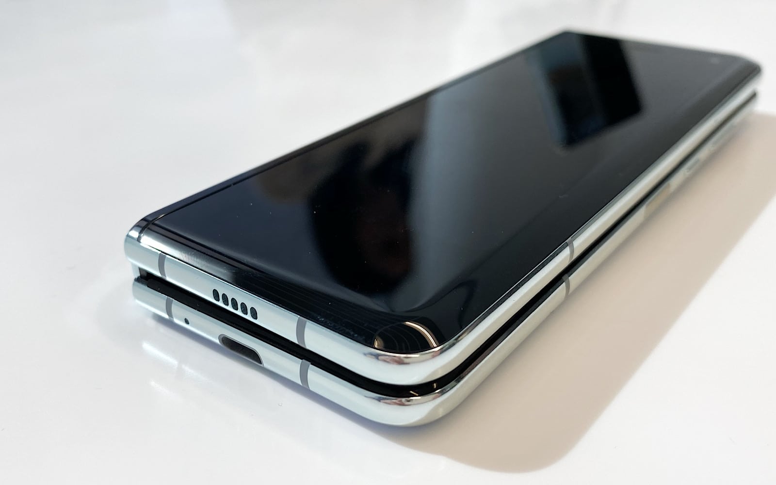 There’s a fairly noticeable dent it leaves on your pockets, too, so if you don’t carry it around in a bag or your jacket pocket, you’ll feel the Galaxy Fold as you walk.