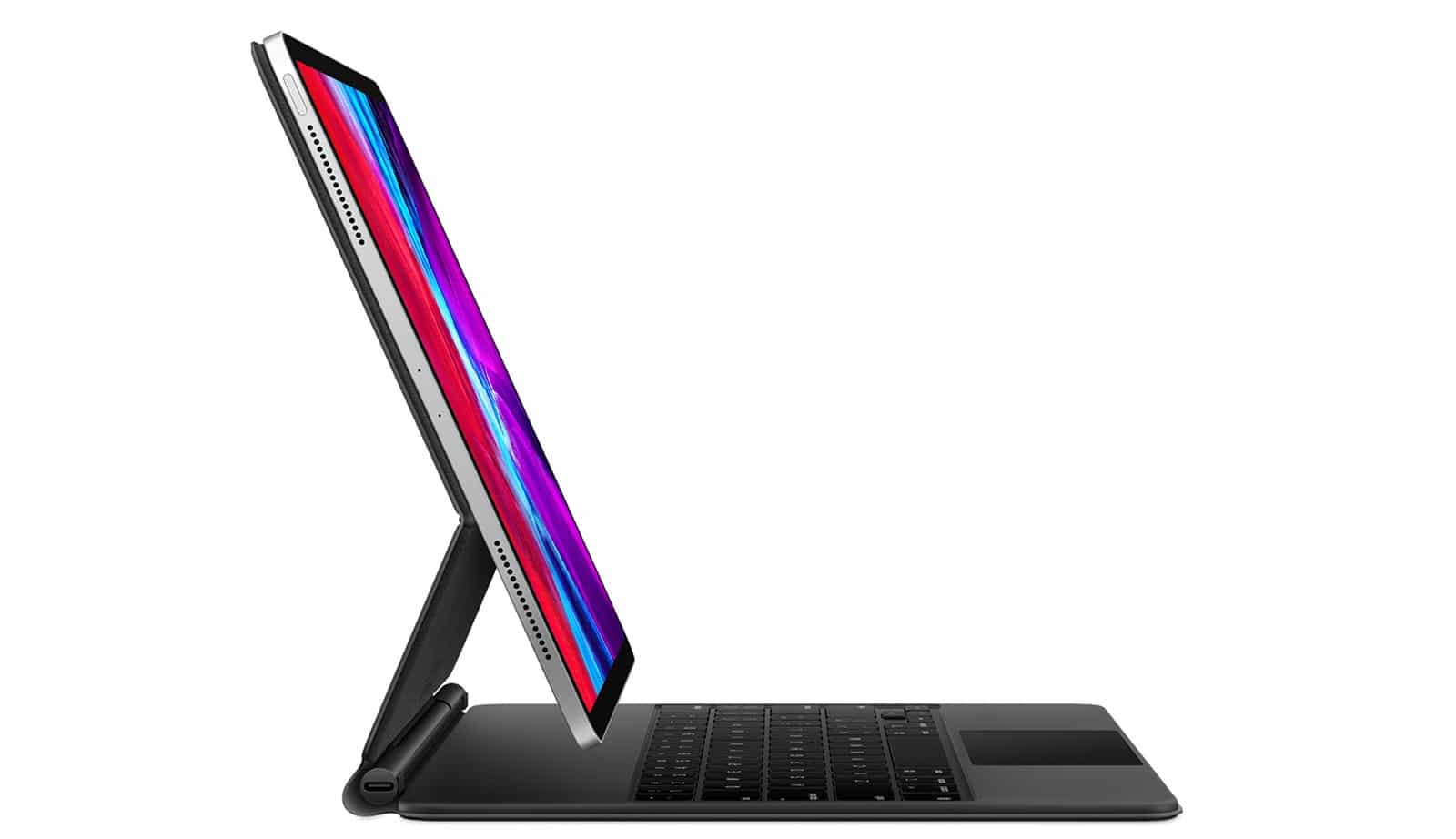 Slightly different, the Magic Keyboard for the iPad Pro uses magnets to not only attach to the back of the iPad Pro, but to hold the tablet above the keyboard with more angle control, almost like Apple had taken a page out of iMac design.