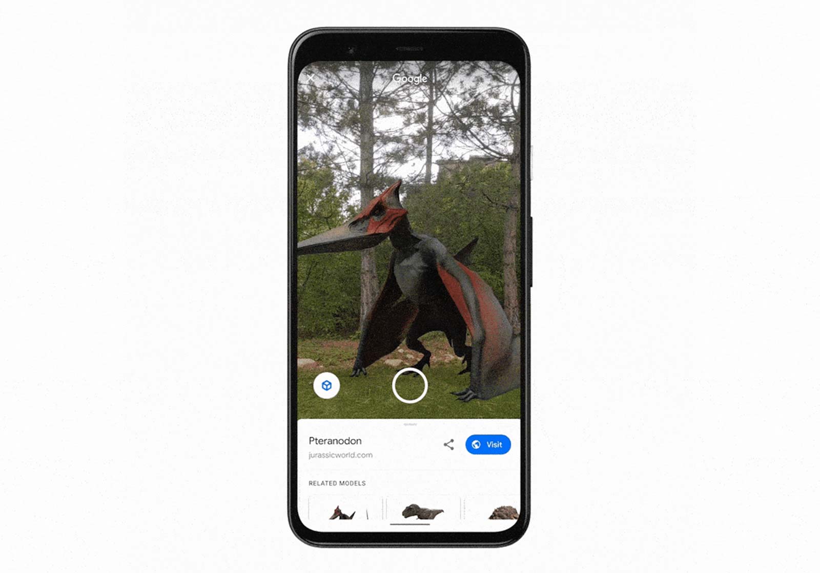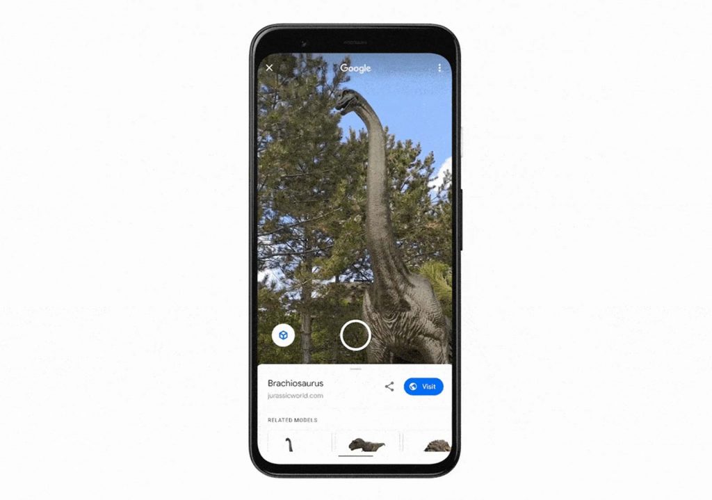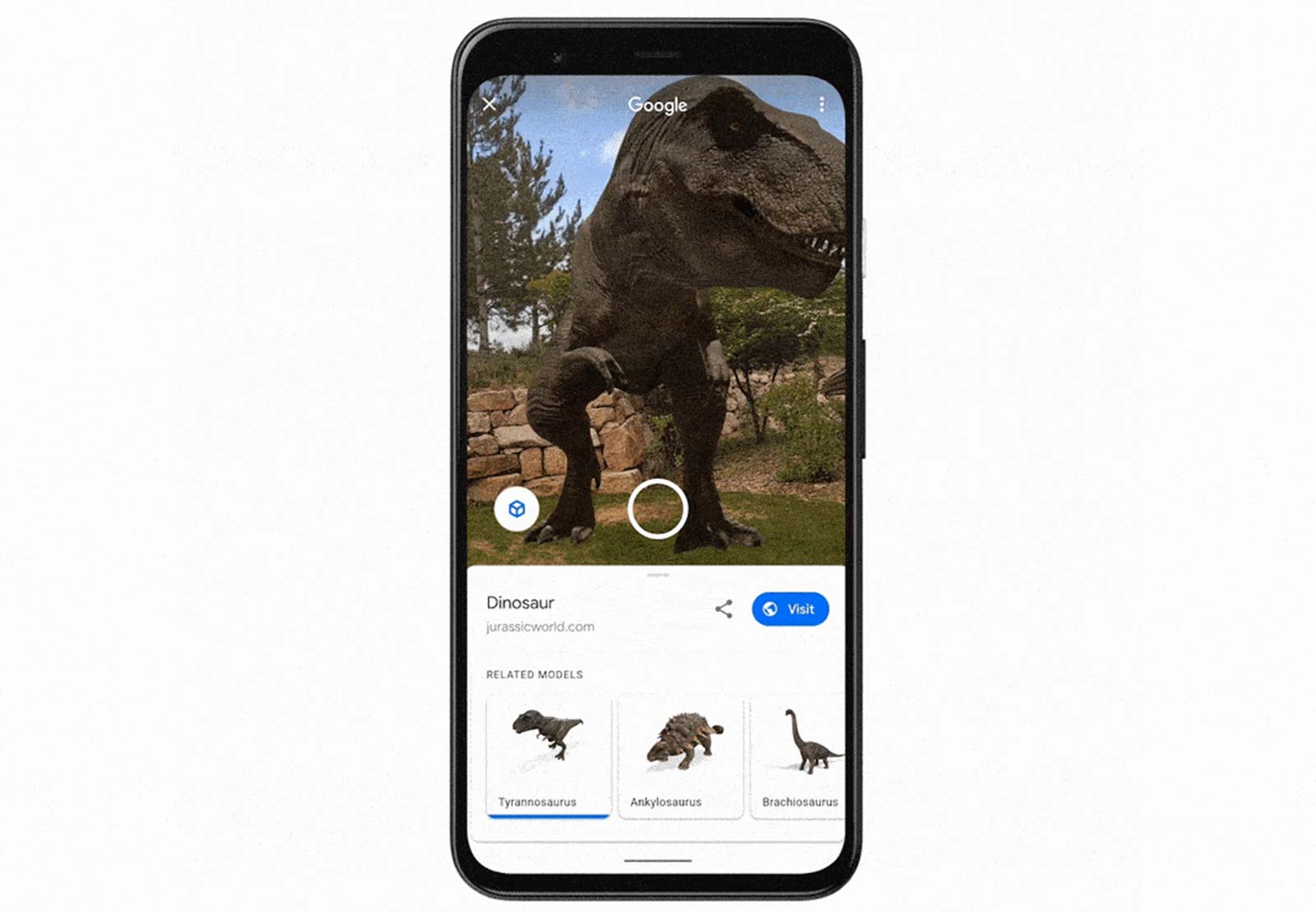 The additions work like this: when you search for “dinosaur” on Google Search via your phone or tablet, you’ll be given an opportunity to view it in 3D, which you can then bring into your own space via augmented reality.