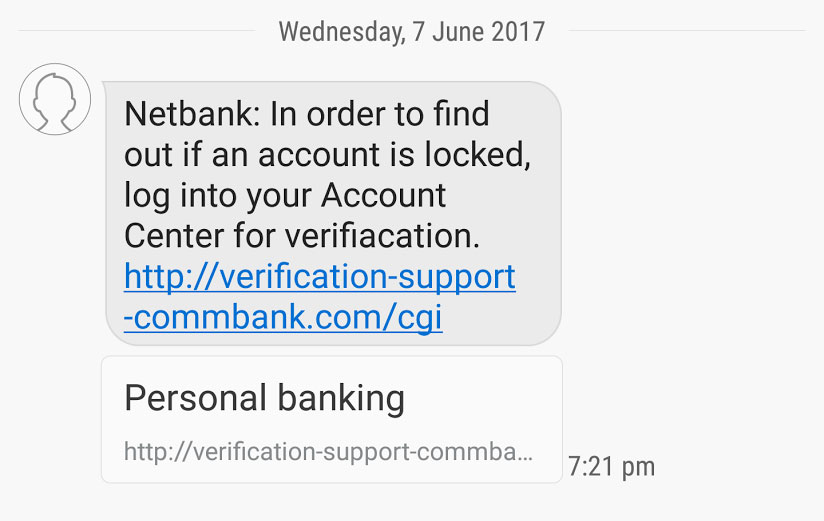 If you do have a bank account, read the message carefully. Scammers can’t use the real website for a bank, and so will either offer something extremely outlandish or something that’s close yet not quite. To find the real thing, search your bank online, and compare it to what’s being offered on the SMS, which is often a very quick way to verify authenticity.