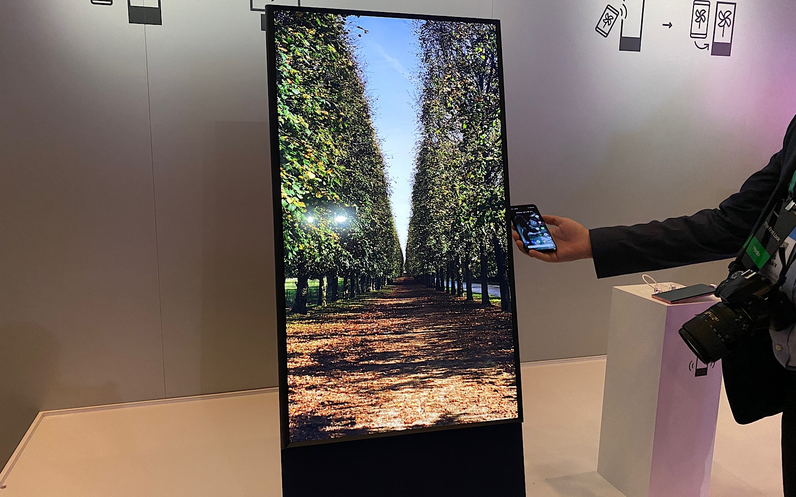 But on the other, the Samsung Sero is built to work with your phone, rotating in its spot so that it doesn’t show media in the typical landscape orientation you expect to see things in, but also vertical and portrait like a phone.