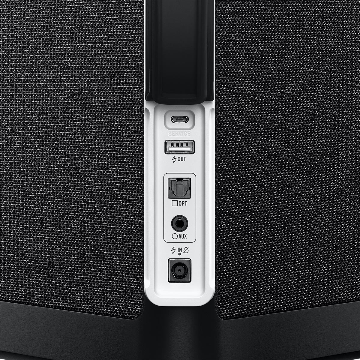 It is, of course, a little larger, and is more akin to a wireless boom box of sorts, albeit a HyperBoom box, though it’s one that like a traditional boom box isn’t dependent solely on ditching the wires. As such, it includes support for two wireless Bluetooth sources, switching from each fairly quickly, while wired sound can be handled over a 3.5mm jack or even an optical audio port, if you happen to have one of those, such as a port from your TV.