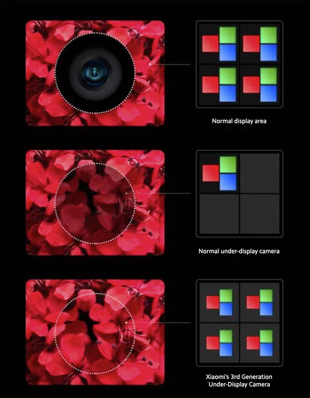 One part of the collaboration that worked with Samsung on the 108 megapixel sensors that made their way into the S20 Ultra, Xiaomi’s under-display camera technology appears to be from its own research, with the under-display camera technology now in its third generation apparently allowing the the screen to pass light through a small gap in its screen your eye won’t see, allowing the camera to fire off unencumbered.