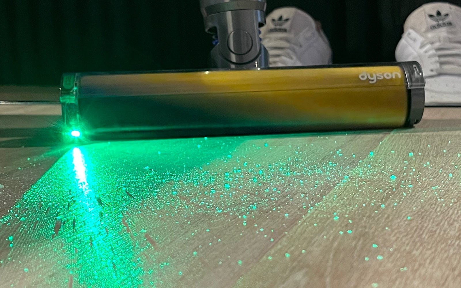 Specifically, it added a green laser, angled using a specific 1.5 degrees and using a custom lens that appears warped, allowing the laser to be mounted from one side and yet cover the path alongside the front of a vacuum head, illuminating the way and highlighting all the particles you might normally miss.