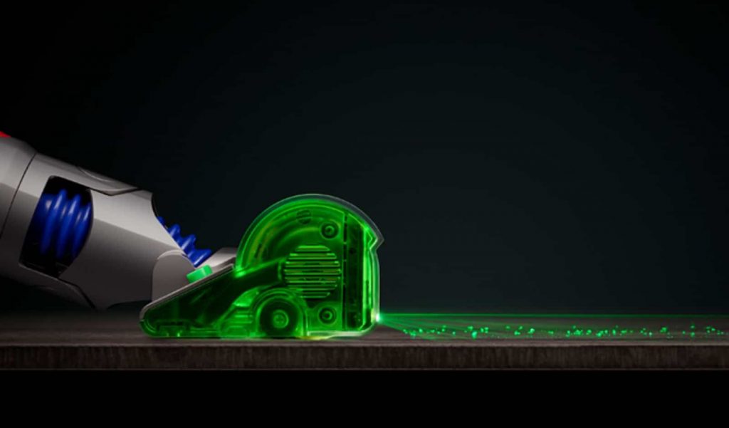 By using a green laser light diode to do the same under a vacuum head at a specific angle, Dyson had essentially come up with a way to light up and find dust, allowing the V15 Detect to suck it up, quite literally.