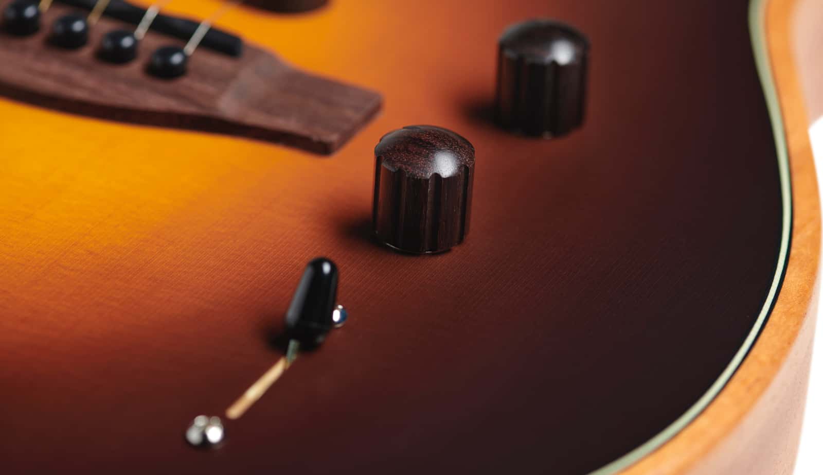 To do this, the guitar pulls from its pickup system under the strings to switch between an acoustic sound or an electric one, using that blend knob to dial in a voice.