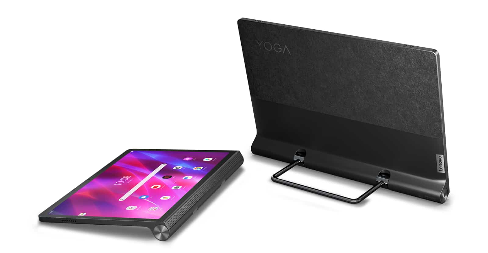 This year, there will be an 11 inch and 13 inch Yoga Tablet, which look a little like what older Yoga tablets looked like, complete with a grip on the bottom that looks a little like a curved book spine, and yet hides a kickstand that can be used to stand it up, and then also hang off a rack.