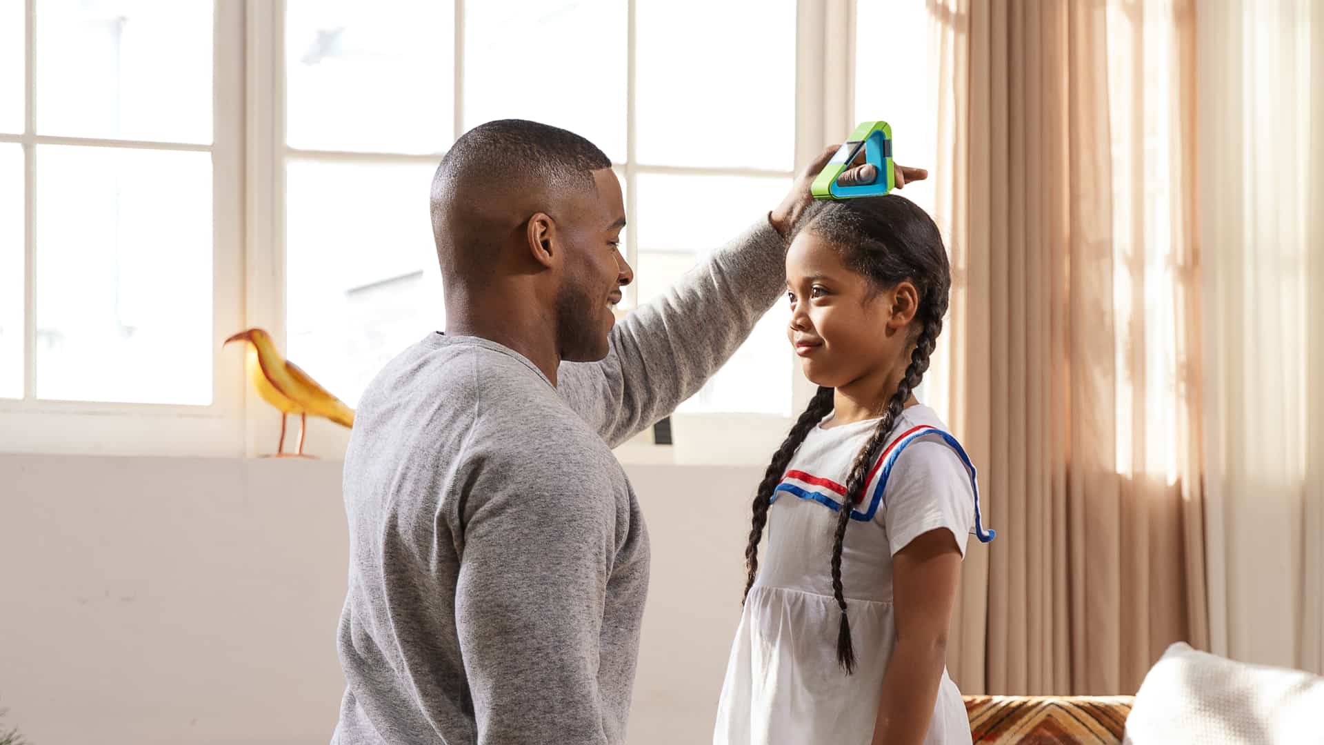 Officially, it’s a laser stadiometer, using a laser and distance between the person holding the stadiometer and the ceiling. It’s a concept built in the Kiko Laser Stadiometer, where you simply need to rest it on a child’s head, and it works out the height with a laser.