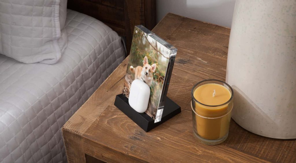 It means if you have a 4×6 postcard photo you want beside your bed and a charging pad, you don’t necessarily need the two to be different, with the Twelve South PowerPic providing that in one device.