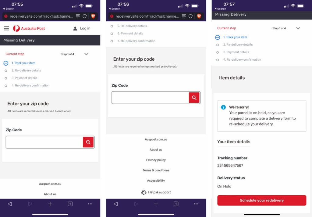 It’s something else: redeliverysite.com. That’s not really Australia Post. That’s your first giveaway.