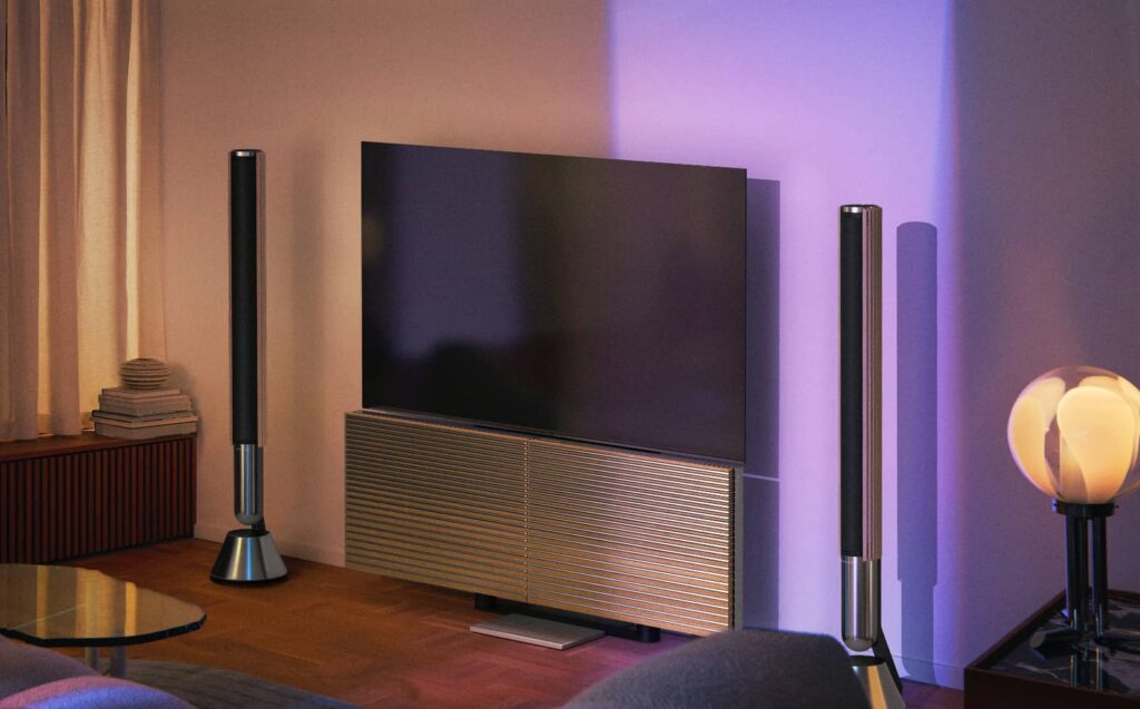 Those panels hold speakers, and there’s a 7.1 inch surround decoder built in, that can also talk to up to eight Beolab speakers, depending on how much money you want to spend on that premium TV experience.