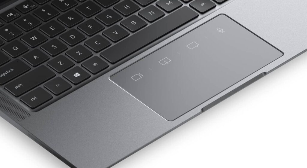 That might be because “WFH” are letters tattooed on the inside of your brain, and if that’s you, there’s a special trackpad in the Latitude 9330 with light-up shortcuts offering quick access to microphone mute, video on and off, screen sharing, and the chat window in Zoom.